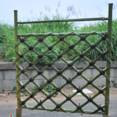 太竹の縦樋の裏が抜けました。次に細竹の横樋を差し込みます。