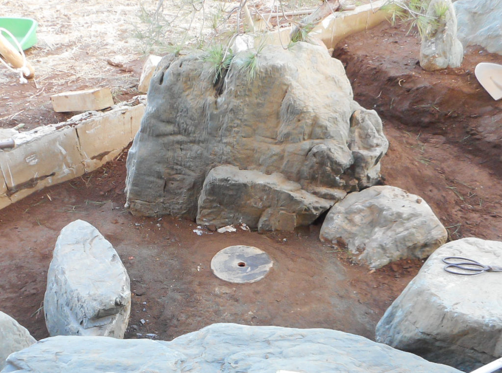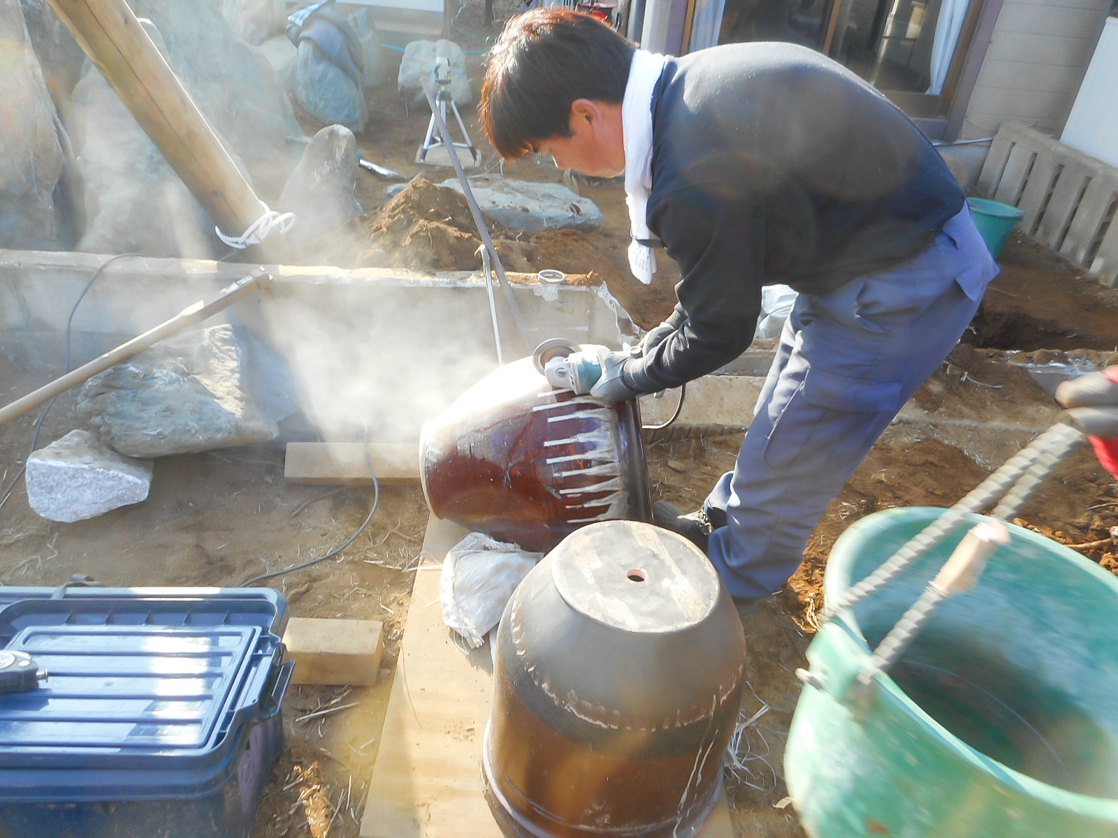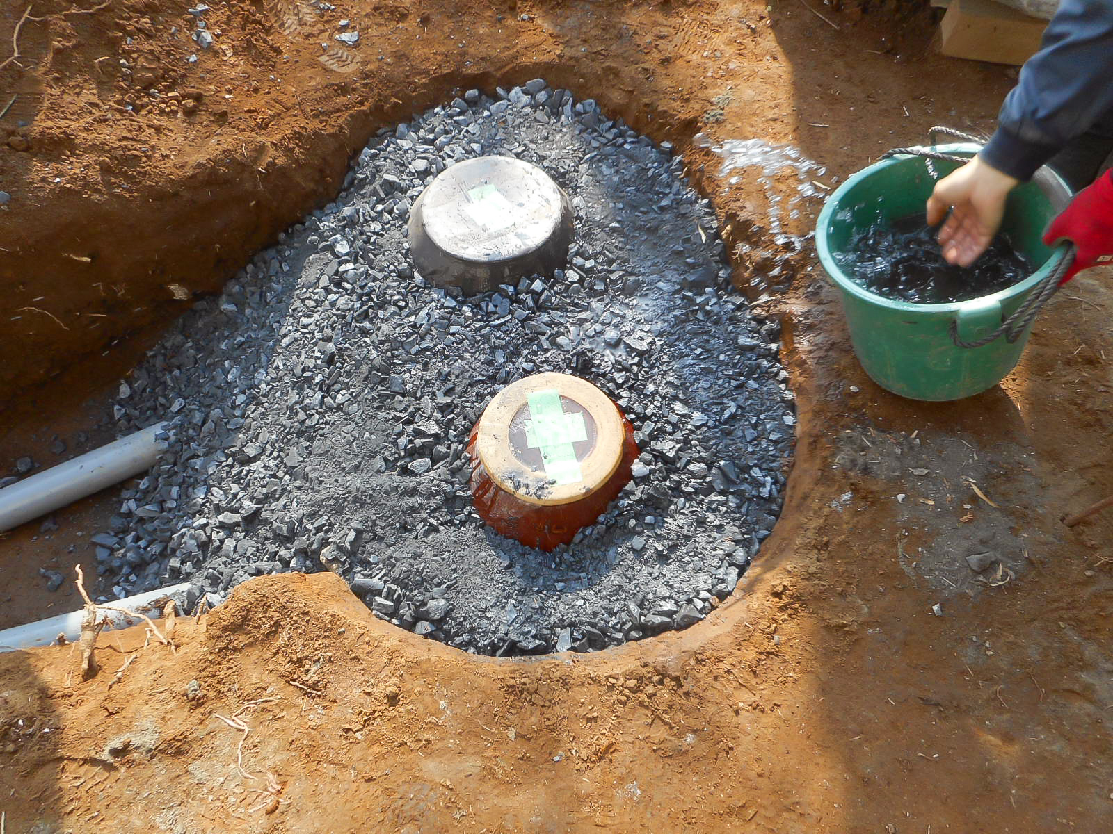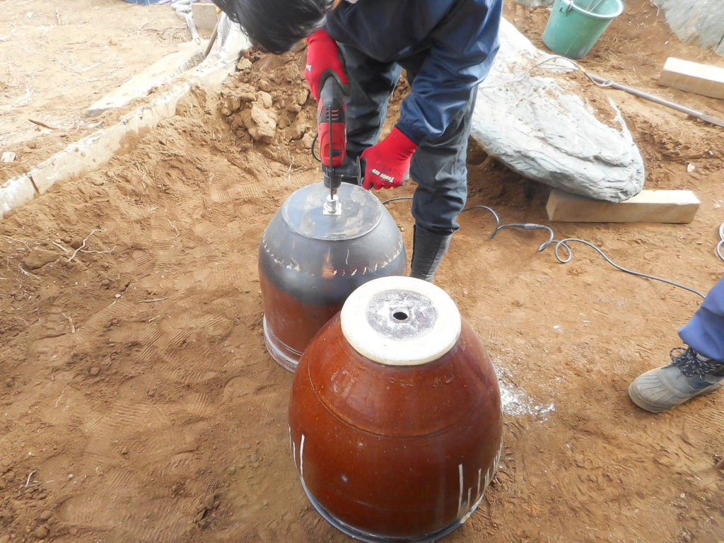 今回はこちらで終了です。水琴窟の製作、特にカメの設置においては繊細な技術が要求されます。ご自身で色々と試されると、勘どころがつかみやすいかと思います。