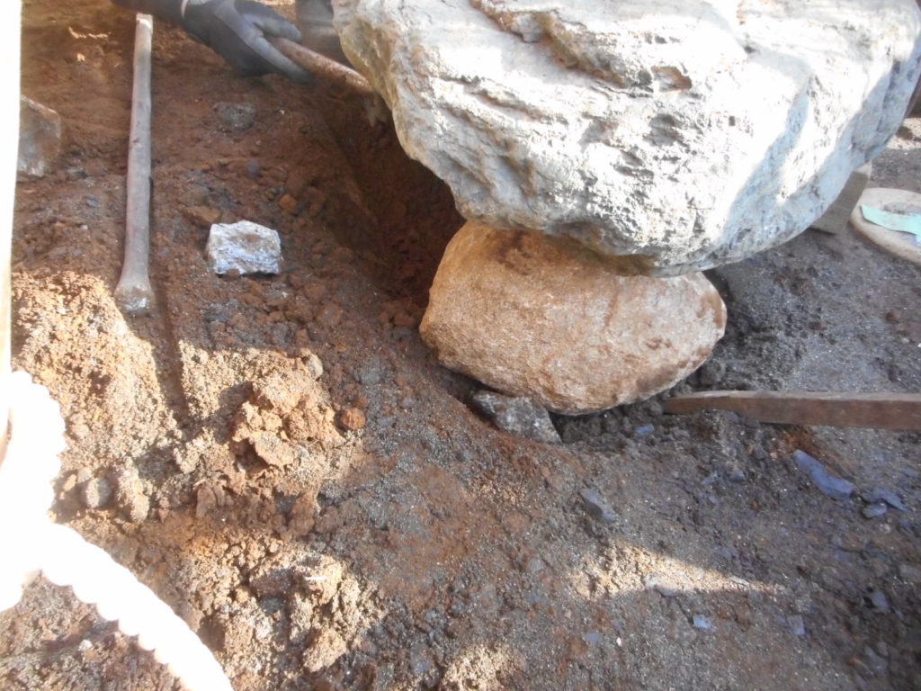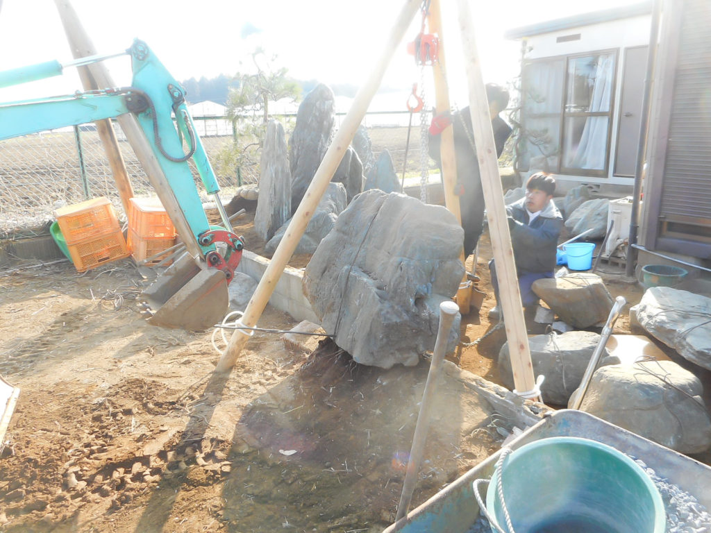 沓脱石、前石、カメを仮置きしますが、後に沓脱石はバランス上撤去します。